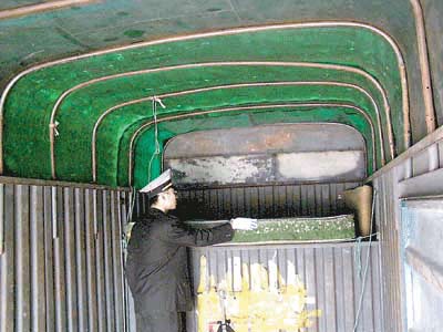 執(zhí)法人員進(jìn)一步檢查,驚奇地發(fā)現(xiàn)該貨車車廂改裝成了一個(gè)小鐵屋,車廂內(nèi)設(shè)有3張席夢思改裝成的6個(gè)臥鋪?zhàn)弧?nbsp;