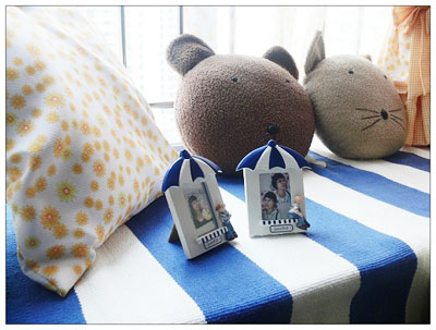 床是一艘行駛的海盜船,這浪漫風(fēng)格怎么過(guò)渡到海洋風(fēng)格的好,偶可是思前想后了很久,最后還是靈機(jī)一動(dòng)把宜家99元的地毯墊子鋪了上去,明黃和海藍(lán)的激烈碰撞,乳白中和,視覺(jué)沖擊強(qiáng)烈。