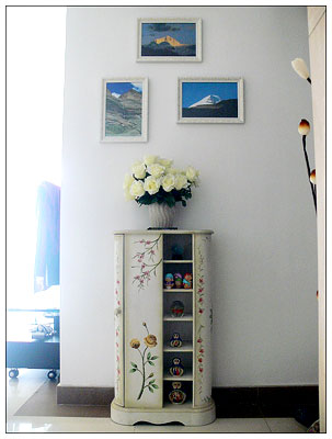 進(jìn)門就可以看到墻上的掛畫,精挑細(xì)選,自然不能壞了自己的品位,客人一來(lái)也會(huì)有一個(gè)良好的印象分。