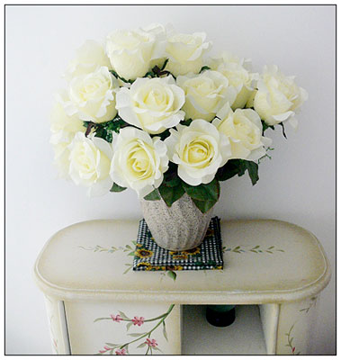 柜上擺設(shè)的花瓶和花都采購(gòu)自花卉市場(chǎng),花瓶顏色低調(diào),而且價(jià)錢也不貴。花束采自花卉市場(chǎng)的婚宴小店,淡淡的淺黃色熱烈盛放,9元一束買了3束,無(wú)論是白天還是夜間,要非常仔細(xì)辨認(rèn)才看得出是仿真花哦。