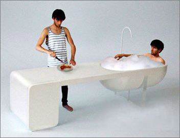 在廚房里面洗澡聽起來有些不可思議,更不用說在廚房里洗盆浴了。不過既然房價這么高、住房如此緊張,為了節(jié)約空間又有什么是不可能的呢。
