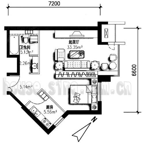 概要: 1.按排緊湊,合理利用空間。2.客廳和臥室動靜分區(qū)。