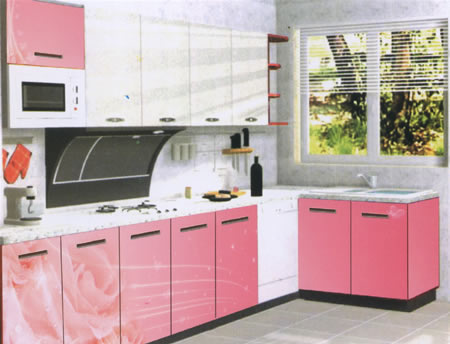 系統(tǒng)櫥柜是以多種不同規(guī)格的板材,以螺絲組裝成符合現(xiàn)場尺寸的櫥柜。其板材多為塑合板,再以熱壓方式貼上一層美耐板作表面,也有部分系統(tǒng)櫥柜是以木心板作為板材。
