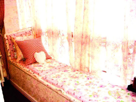 女人天生愛做夢,擁有一個晴觀落日、夜觀星空的大飄窗是不少女性的夢想?,F在,女人們可以把飄窗掛上粉色或者紫色的碎花棉布窗簾,擺上一盞香熏燈,旁邊放一個小小的沙發(fā),或者鋪上軟軟的地毯,放上幾個可愛的抱枕,好好想象一下過去和未來。還可以為飄窗臺做一套漂亮的柜子,再在窗臺上靠邊三分之一的空間里,魔術般變出一張精巧的梳妝臺,收羅全部的美麗武器。這樣,一個屬于自己的私密空間就產生了。有了這些,抱著布絨娃娃慵懶的窩上一個下午,找找少女時的初戀吧!