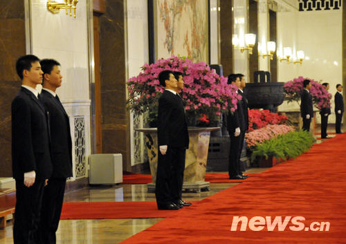 人民大會堂整齊劃一的服務(wù)人員(陳濤 攝)