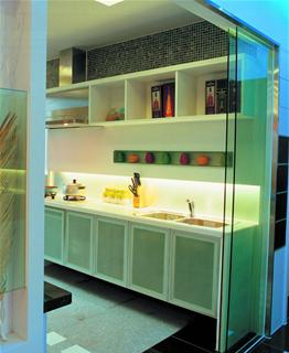 另外,廚房也是不錯(cuò)的休息區(qū),可以在廚房里添設(shè)娛樂(lè)設(shè)備,但電視和音響宜遠(yuǎn)離爐臺(tái)與水槽,可存放于同雙眼平高的層架上,以不致碰到食物為宜。若廚房是位于多功能的大房間一隅,在廚房的設(shè)計(jì)上,宜和室內(nèi)其他部分搭配融合,在空間允許的條件下,不妨用多功能桌椅、燈飾或沙發(fā)等獨(dú)立家具來(lái)搭配廚具。