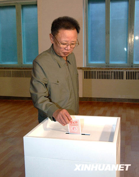 朝鮮全國8日舉行第12屆最高人民會議代議員選舉。金正日是第333號選區(qū)的代議員候選人。朝鮮中央選舉委員會當天發(fā)表新聞公報說,截至當?shù)貢r間14時(北京時間13時),有93.1%的選民參加了投票。