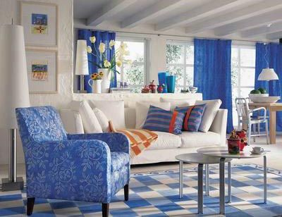 客廳如果是向北的采光口,因?yàn)楸狈降臍饬鲿?huì)比較寒冷,客廳主色調(diào)可以以紅色配,因?yàn)榧t色會(huì)給人一種比較溫暖、熱情的感覺(jué),與光線(xiàn)正好起到一個(gè)比較好的平衡作用,這就是中國(guó)傳統(tǒng)住宅文化上的陰陽(yáng)互補(bǔ)。