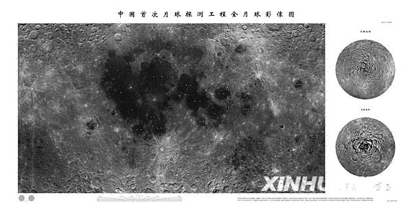 2008年11月12日,依據(jù)嫦娥一號(hào)衛(wèi)星拍攝數(shù)據(jù)制作的中國(guó)第一幅全月球影像圖正式公布。 新華社發(fā)
