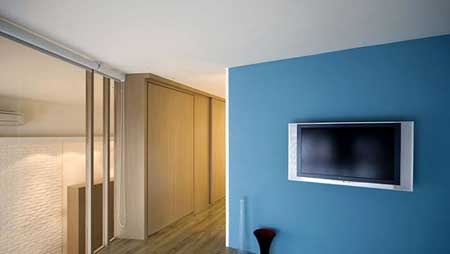 當(dāng)空間不大時(shí),用淺色調(diào)或偏寒色系的色調(diào),把四周墻面和天花板甚至細(xì)節(jié)部分都漆成相同的顏色,空間頓時(shí)就能變得空曠。如你不想有壓抑感的話,就讓天花板的顏色比四周墻面的淡。空間從上而下,層次分明,也會(huì)延伸視覺(jué)效果,就能輕松把家變大了。
