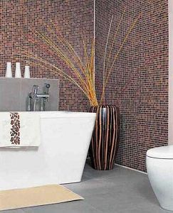 棕色給人一種沉穩(wěn)、高貴之感,大面積的棕色馬賽克和造型硬朗的浴具搭配,營造出平穩(wěn)卻不乏生動的空間。以下面的例子為榜樣,現(xiàn)在就拆解棕調(diào)衛(wèi)浴的打造招數(shù)! 勿忘的點睛之筆——方便美觀的裝飾品:在整體氣氛盈滿的空間里,偶爾有角落里的一點亮色突然點亮了整個空間。純白色的衛(wèi)浴用品與大體量木制大花瓶的古舊氣息,在此發(fā)揮了這種營造“低調(diào)”浪漫的奇妙效果。