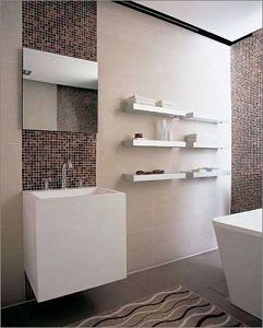 如果你的墻面底色較深不妨運用目前最大膽的花色瓷磚作為主題墻裝飾材料吧。讓鮮花堆砌出的亮麗色彩在墻面上大面積地進(jìn)行裝飾,拼貼的效果會使浴室設(shè)計看起來更加大氣,配上熠熠生輝的拉絲鋁浴室家具和亮面鏡子絕對拉風(fēng)。張揚的創(chuàng)意是時尚 年輕人不二的選擇。