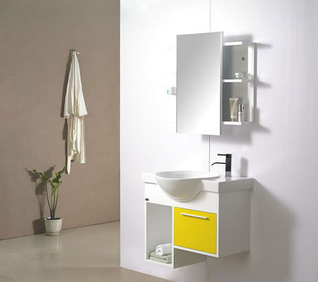 木質(zhì)的浴室柜吸水容易變形,所以它對周圍環(huán)境有非常苛刻的要求,而普通家庭的浴室一般只有幾平方米的空間,不容易做到干濕分區(qū)。在選購浴室柜時,可以采用防火板、耐磨板,高分子聚合物等復(fù)合型板材作為柜面材料,它們不但具有很好的防潮性,還能模擬出實木的顏色。