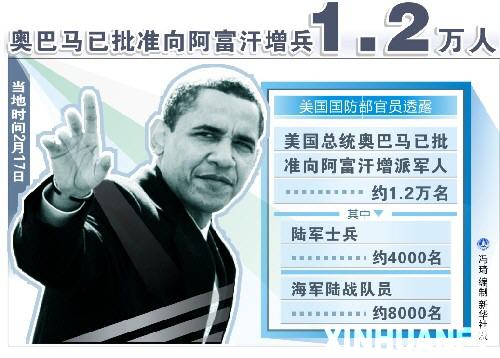 2009年2月18日 圖表:奧巴馬已批準向阿富汗增兵1.2萬人 新華社發(fā)