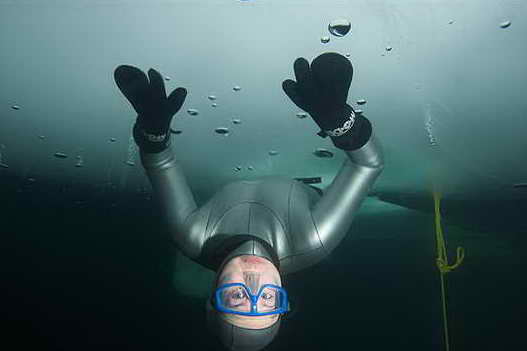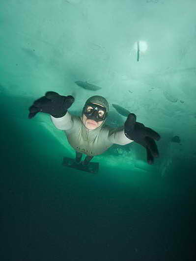 冰層下的潛水者。
