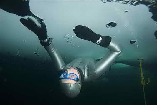 潛水者參加世界冰下潛水競(jìng)賽