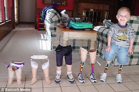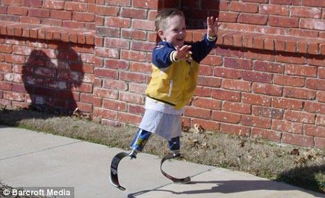 科迪戴上假肢后,不僅很快學會了靠假肢走路,并且還成了一個相當活潑好動的小男孩。戴上假肢的科迪現在不僅可以走路、跑步,甚至還可以游泳、踢足球、打高爾夫球、打冰球、練空手道!