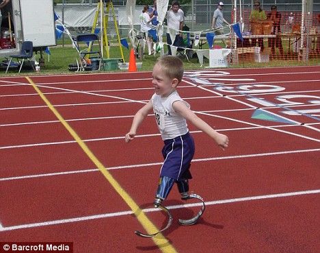 安裝假肢的科迪已可以同肢體健全的兒童賽跑