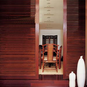 同樣,窗也作為一種連通室內(nèi)室外空間的介質(zhì),有著其特殊的精神內(nèi)涵。窗可以將室外的景致引入到室內(nèi)空間中,也可以通過(guò)窗框,將室內(nèi)的環(huán)境象征成一幅幅裝飾畫而豐富建筑的立面。同時(shí),室內(nèi)每個(gè)房間也可以通過(guò)窗,通過(guò)裝飾窗框連通室內(nèi)室外為一個(gè)整體。這種傳統(tǒng)的修飾手法將室外的景色和植物通過(guò)窗引入室內(nèi),來(lái)豐富室內(nèi)環(huán)境,意在“一卷代山,一勺代水”,以小見(jiàn)大,寓無(wú)限意境于有限的景物之中。所以,門和窗的起始正猶如創(chuàng)作一幅山水或是一幅書法中的起筆,所有的神韻和氣勢(shì)均在這動(dòng)人的一“起”之中。注重細(xì)節(jié)才能突出效果。尤其是在現(xiàn)代結(jié)構(gòu)的住宅中,“中國(guó)元素”的置景特點(diǎn),往往可以達(dá)到移步換景的裝飾效果。這種裝飾手法,給空間帶來(lái)了豐富的視覺(jué)效果。像屏風(fēng),帷幔,翹頭案等這些家具,展現(xiàn)出了中國(guó)傳統(tǒng)藝術(shù)的永恒美感。
