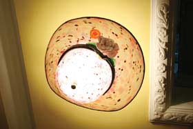如果不是中間的發(fā)光體,你很可能會誤以為這是一頂平凡的帽子。如果它真是帽子那就再普通不過了,但是它卻是一盞燈,一盞逼真得像真的帽子一樣的壁燈。把它掛在你的房間里,或許到你家中做客的朋友會大吃一驚——掛頂這樣的帽子干什么啊?這時候你便可以炫耀一番,淘到這樣的燈不容易。