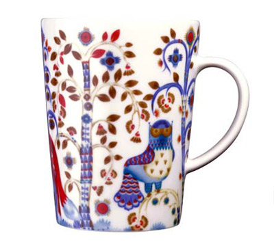 色彩鮮明,想象風(fēng)格強烈的圖案,取代了安靜的單色系。設(shè)計師讓3只美麗的奇幻生物,得以現(xiàn)身在這片魔幻森林中,讓大家看到傳統(tǒng)芬蘭民俗文化華麗豐富的另一面。在深青與純白底色上,加上有如節(jié)慶般繽紛的色彩,得以喚醒人們的想象力,提醒你每一天都是值得鼓舞慶祝的好日子。