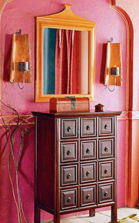挑選帶鏡子類的家具,如梳妝臺、衣鏡、穿衣鏡,要注意照一照,看看鏡子是否變形走色,檢查一下鏡子后部水銀處是否有內襯紙和背板,沒有背板不合格,沒紙也不行,否則會把水銀磨掉。