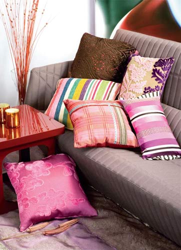 在選擇同類色系靠包時,要避免選擇與沙發(fā)顏色過于相近的色彩,以免造成過于沉悶的效果。而有圖案效果的靠包往往能以其豐富的色彩起到調(diào)節(jié)的作用,增加了視覺的親和力。