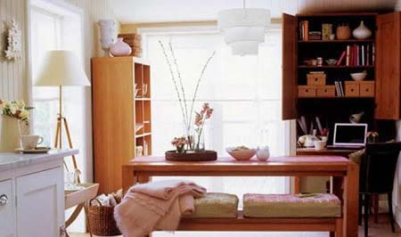 書柜,要選擇與餐桌相同的材質(zhì)和色調(diào),才不會破壞整體布局。完成工作后,將所有的辦公用品塞到柜子后,相信關(guān)于工作的全部煩惱已經(jīng)悄然離去。