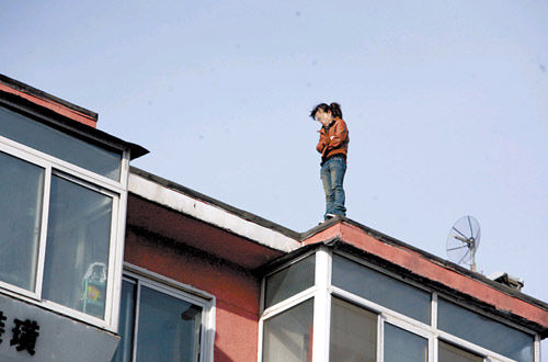 群眾介紹,昨天13時許,他們看到這名女子在樓頂走來走去,還打了一個電話,后來又把電話摔到了地上。這期間,大家報了警。