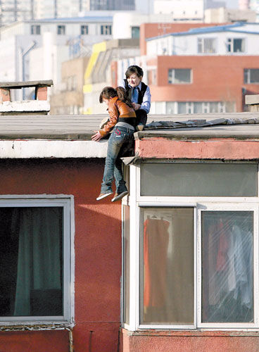這棟樓的樓頂邊緣非常光滑,沒有任何可以搭手或支撐身體的地方,不好強(qiáng)行營救。