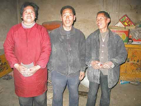 在他們家徒四壁的家里,看到筆者給他們照相,從來(lái)都沒(méi)錢(qián)去拍張照片的他們露出了難得的笑容。從右至左依次為:二哥樊銀成、三弟樊貴成、弟媳商玉金。