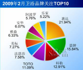 通過(guò)對(duì)09年2月份衛(wèi)浴市場(chǎng)品牌、產(chǎn)品關(guān)注度的一系列調(diào)查,結(jié)論如下:
