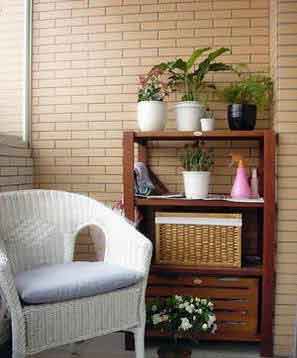 除此之外,陽(yáng)臺(tái)還可以改造為一個(gè)休閑區(qū)。陽(yáng)臺(tái)作為室內(nèi)向室外的一個(gè)延伸空間,是房主人擺脫室內(nèi)封閉環(huán)境,呼吸室外新鮮空氣,享受日光,放松心情的場(chǎng)所。因此,根據(jù)陽(yáng)臺(tái)面積大小,稍加裝飾就能使陽(yáng)臺(tái)滿足主人追求愜意生活的需要。陽(yáng)臺(tái)面積小,可以采用裝飾性強(qiáng)的小塊墻磚或毛石板作點(diǎn)綴,以突出陽(yáng)臺(tái)的休閑功能。而面積較大的陽(yáng)臺(tái),就可以用質(zhì)感豐富的小塊文化石或窄條的墻磚來裝飾墻壁。陽(yáng)臺(tái)面積不大,又要集休閑、實(shí)用功能于一身,既方便主人健身、閑坐,又得考慮收納雜物之需,采用折疊式設(shè)計(jì)的桌椅及吊墻的儲(chǔ)物柜應(yīng)該說最適合小陽(yáng)臺(tái)了。