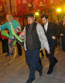 趙本山首次與張藝謀合作是在《有話(huà)好好說(shuō)》中,后來(lái)又有了《幸福時(shí)光》,而且還得追溯到9年前,但兩人的關(guān)系卻從趙本山被確定為男一號(hào)起發(fā)生了變化。趙本山的喜劇天分在片中被挖掘得淋漓盡致,而他的導(dǎo)戲天分也因那次合作變得一發(fā)不可收拾。從《劉老根》到《馬大帥》,再到今年的開(kāi)年大戲《關(guān)東大先生》,趙本山給全國(guó)觀眾送去了更多笑聲,私下里趙本山不止一次說(shuō),是張藝謀點(diǎn)開(kāi)了他導(dǎo)演的穴位,他更把張藝謀尊稱(chēng)為“良師益友”。據(jù)趙本山身邊的知情人透露,年初時(shí)在北京,兩人就已進(jìn)行了兩次密談,張藝謀此行就為延續(xù)密談的火花。而張藝謀身邊的知情人也放出口風(fēng),張導(dǎo)此行除了與趙本山會(huì)面外,更是為新戲選演員,而且是從趙本山帶領(lǐng)的遼寧民間藝術(shù)團(tuán)選。這樣一來(lái),一直以來(lái)被認(rèn)為登不了大雅之堂的二人轉(zhuǎn)演員終于要揚(yáng)眉吐氣了,他們哪有不表現(xiàn)的道理?昨日,記者從知情人口中獲悉,為迎接張藝謀這位貴客,本山基地不但鋪上紅地毯,趙本山的高徒們更是整裝一新,腰上系著紅綢子,用東北特有的扭秧歌來(lái)迎接他??吹竭@種陣勢(shì),張藝謀的心情跟身上的紅衣服一樣明亮,不但跟這些“徒弟”們一一握手,還跟他們合影留念。