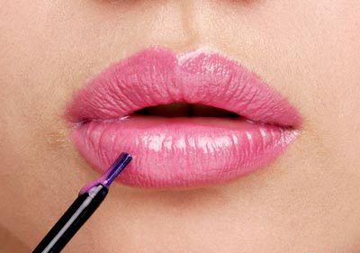 如果嘴唇太大,可用唇筆在唇的內(nèi)側(cè)描繪出較理想的唇形,讓嘴巴看起來(lái)較小。