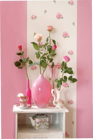 3、大花朵圖案降低居室拘束感。有些花朵圖案逼真、色彩濃烈,遠觀真有呼之欲出的感覺,這種墻紙可以降低房間的拘束感,適合格局較為平淡無奇的房間。由于這種圖案大多較為夸張,所以一般應搭配歐式古典家具,喜歡現(xiàn)代簡潔家具的人們最好不要選用這種墻紙。