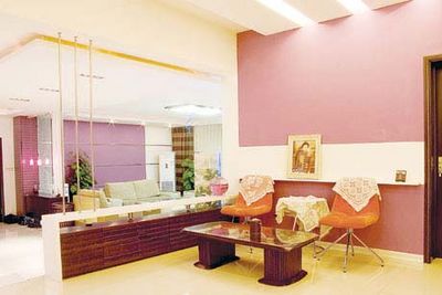 王先生雖然是個(gè)生意人,但對堂皇的金色敬謝不敏,最喜歡的是神秘高貴的紫色。這次裝修房子,紫色自然成了他家的主色調(diào)。設(shè)計(jì)師將這種紫色大面積地運(yùn)用到了背景墻的裝飾中,并在其他小細(xì)節(jié)處加以映襯。這種色彩設(shè)計(jì)不僅不會(huì)使居室過于昏暗,還會(huì)有一種雅致的效果。