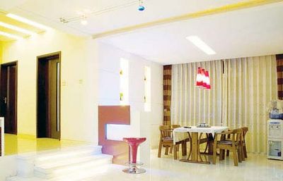 客廳主題顏色確定后,屋子的其它部分色彩也隨之確定。玄關(guān)處一側(cè)為廚房的外墻,用石膏板做成條狀,全部為紫色,在中間裝上落地鏡,既實(shí)用,又能擴(kuò)展空間。另一側(cè)的鞋柜如果用紫色會(huì)顯得沒有層次,可以用色調(diào)接近的胡桃色,而墻垛則與另一側(cè)相協(xié)調(diào)均為紫色橫條。