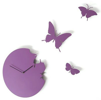 這是一款極具裝飾性的鐘表。它的表盤上可以分離出幾只蝴蝶,擺放在鐘表的遠端,不僅非常美觀,而且還能提醒你:時間正在慢慢的飛逝……
