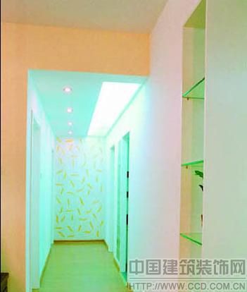 房子采用了三種材料。一是飾面板類(斑馬木飾面),二是玻璃材質(zhì)類(磨砂玻璃/水銀鏡面/玻璃磚),三是藝術(shù)涂料類。例如電視背景墻的造型,它是飾面玄關(guān)與水銀鏡面的綜合運(yùn)用,和白色墻體搭配,視覺上有不同材質(zhì)的混搭沖擊。同時(shí),在室內(nèi)不同角度看電視背景墻,效果又不一樣。從水銀鏡面看去,是客餐廳的再現(xiàn),豐富房子的層次感。從白色的電視墻看去,什么都沒有,不受任何的視覺干擾,看電視不錯(cuò)。從飾面玄關(guān)看去,它和藝術(shù)涂料刷成的過道景端形成呼應(yīng)。不管走到房子的哪個(gè)地方,都有值得欣賞和揣摩的地方。同時(shí),居室材質(zhì)協(xié)調(diào)得很好,不會(huì)很亂,也不會(huì)每處都突出,更不會(huì)分不出重點(diǎn)。這是材質(zhì)運(yùn)用的關(guān)鍵。得當(dāng)?shù)倪\(yùn)用才會(huì)達(dá)到意想不到的效果。否則,就是一種堆砌。