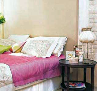 床是臥室的活動中心,所以應(yīng)當(dāng)擺放在房間的中部,并且通向床的道路應(yīng)盡量通暢,使其成為最方便接近的地方。如此放置使人感覺房間被床分成了兩部分,因而看起來更大一些。兩個床頭柜分置于床的兩邊。衣柜則放置在床的對面,這樣既對稱,又能非常方便地看電視。