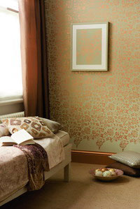 同樣,金黃色水性金屬質(zhì)感涂料也適用于踢腳板等木制品,以便和墻面上的模板圖案相映襯。