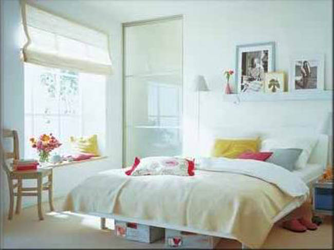 舒適的臥室可以讓人享受一場寧靜的酣睡,以白色為主基調,搭配淺綠、藍灰,整體色調平靜而不蒼白,淺色所營造的寧靜氛圍讓煩悶的心情得到平復。白色床品上搭配古典花紋的灰色靠包和帶有灰度色塊拼接的織物,為臥室注入了輕松、隨意的元素,使整個空間在明媚中蘊涵著沉靜的氣息。