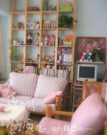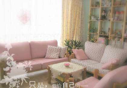 粉嘟嘟沙發(fā),大大的落地窗,飄逸的窗簾,陽光充分透過來,整個(gè)房間就溫馨起來