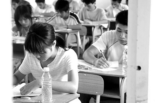 資料圖片:我們的教育必須尋求適度學(xué)習(xí)負(fù)擔(dān)與學(xué)生全面發(fā)展間的平衡,而解決之道在于大力推行素質(zhì)教育。圖為考場內(nèi)的高考考生。