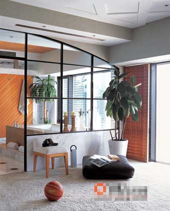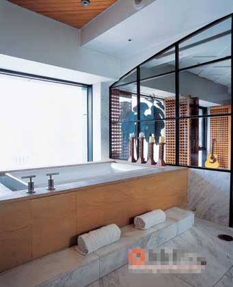 這的確非常符合一個男人的居住條件。對著落地玻璃窗的地方,Alan擺著他的Guitar和籃球,或許給心愛女孩唱情歌的日子已經(jīng)不會再來,但琴弦響起,依然撩動心弦。浴室與臥室緊鄰,并且只由玻璃墻隔開,香熏蠟燭一列四支并排站好,根據(jù)不同心情不同需要有選擇地點燃。浴缸正對著窗戶,隨時可以看到戶外的景色,沒時間去廂根的話,在家泡也依然可以找到戶外溫泉的感覺。