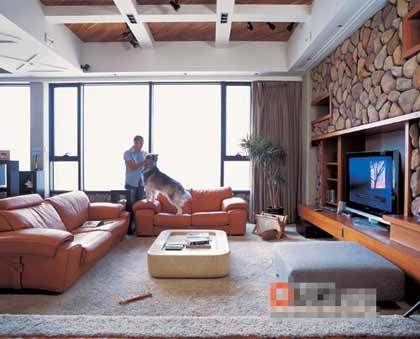 大沙發(fā),落地窗,偌大的空間沒有一點多余的裝飾。屋角只信手扯出一抹挺拔的綠色,還有帥氣的哈士奇,屋子變成家就這么簡單。