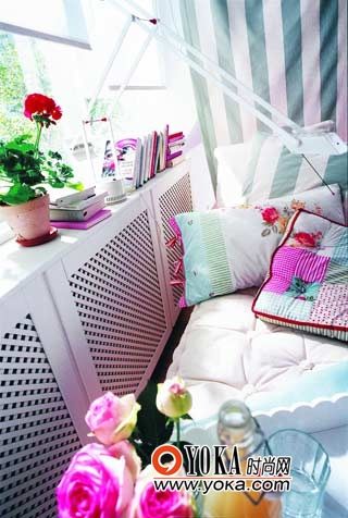 內(nèi)陽臺的一角,擺上一組多功能擱架,就成了一個簡易儲藏室。平時不大用到的工具、一些小型運(yùn)動器械,還有主婦們儲備的米、面等食物都可以分類儲放在這里。配合外掛式擱架和各種尺寸的儲物盒,可以使儲藏角更井井有條。