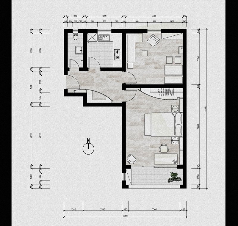 在戶型較小的居室內(nèi),應(yīng)盡量避免絕對的空間劃分,比如一個(gè)完全獨(dú)立的玄關(guān)會占區(qū)客廳不少空間??梢岳玫孛妗⑻旎ò宀煌牟牧?、造型,以及不同風(fēng)格的家具以示區(qū)分。