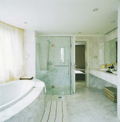大理石裝潢推薦用地:客廳的地面,電視背景墻、衛(wèi)生間的墻、地面、櫥柜和浴室柜的臺面。